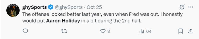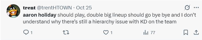 不少的火箭球迷都对乌度卡启用霍勒迪的做法表示不满:
